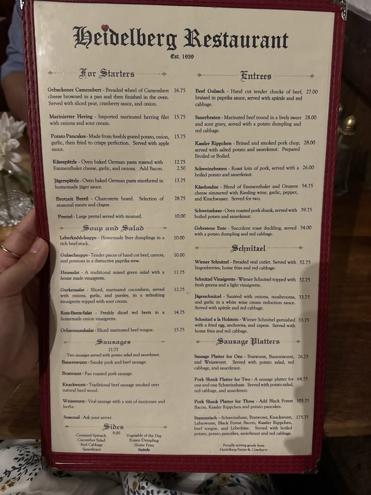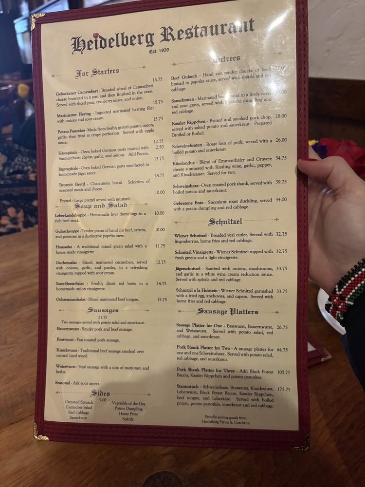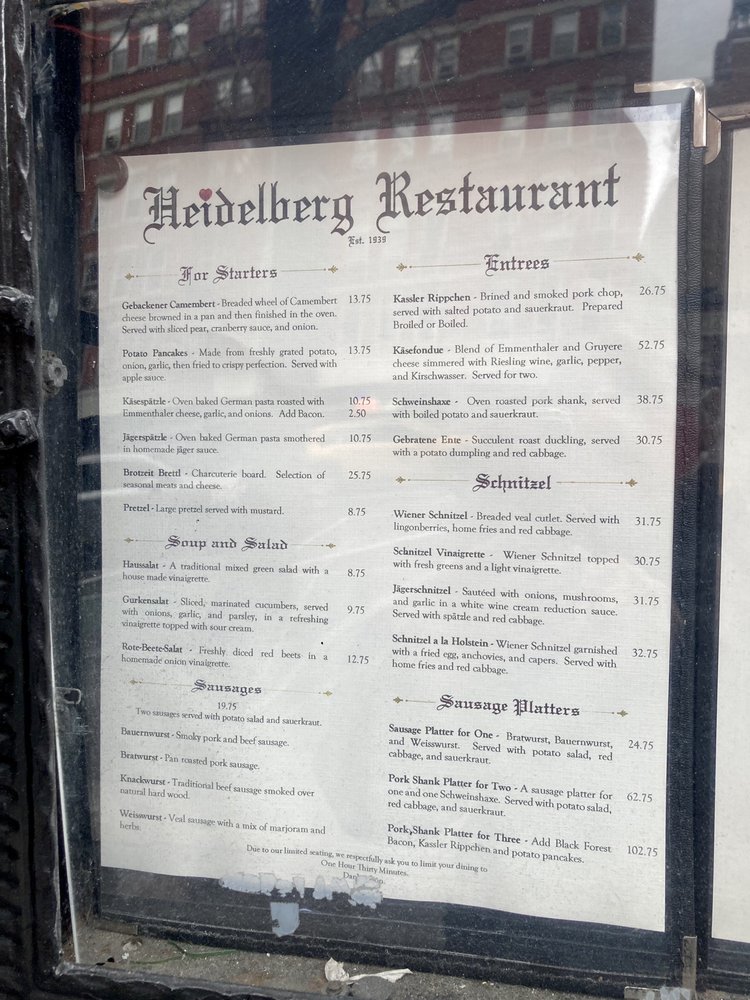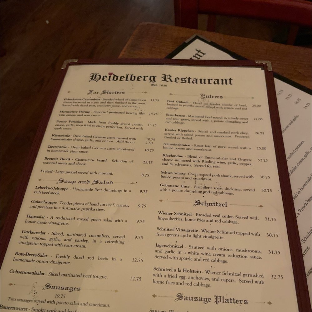 As a food reviewer of Restaurant World, I am thrilled to introduce you to Heidelberg Restaurant, a cozy German gem located in New York. This restaurant offers a wide variety of traditional German dishes, including sausages, entrees like beef gulasch and schnitzel options like Wiener Schnitzel. The atmosphere is described as casual yet classy, perfect for a dinner with friends or family. Customers rave about the flavorful and generous portions, with standout dishes like the Leberknodelsuppe, marinated beef tongue, and sausage platter. The restaurant's authentic German ambiance and attentive service make for a memorable dining experience. Overall, Heidelberg Restaurant is a must-visit destination for those craving classic German cuisine in a welcoming setting.